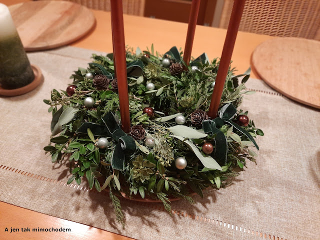 Začátek adventu mívám pracovně hektický a jsem ráda, když stihnu aspoň adventní svícen nebo věnec na stůl. Letos toho času je ještě míň a tak se mé adventní zdobení protáhlo skoro na čtrnáct dní. Konečně je vše hotovo a jsem celkem spokojená.